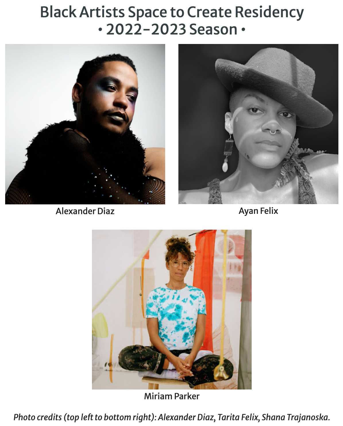 Photo credits (top left to bottom right): Alexander Diaz, Tarita Felix, Shana Trajanoska.